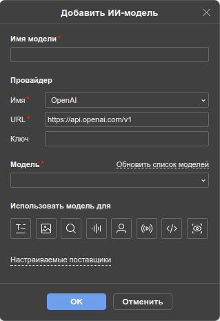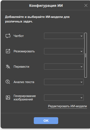 Поддерживается использование ИИ-агента.
