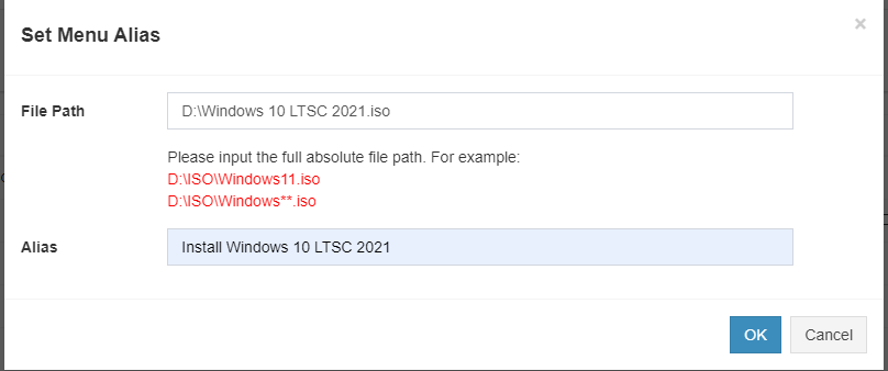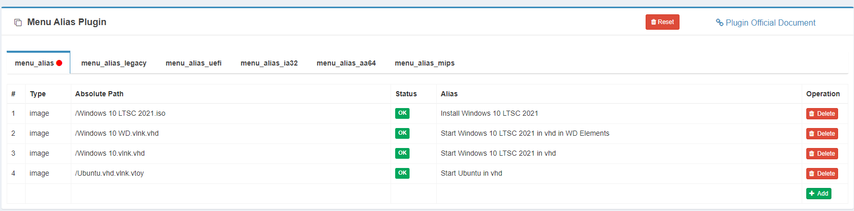 - В разделе Menu Alias Plugin можно установить кастомные названия для ISO и VHD-файлов: