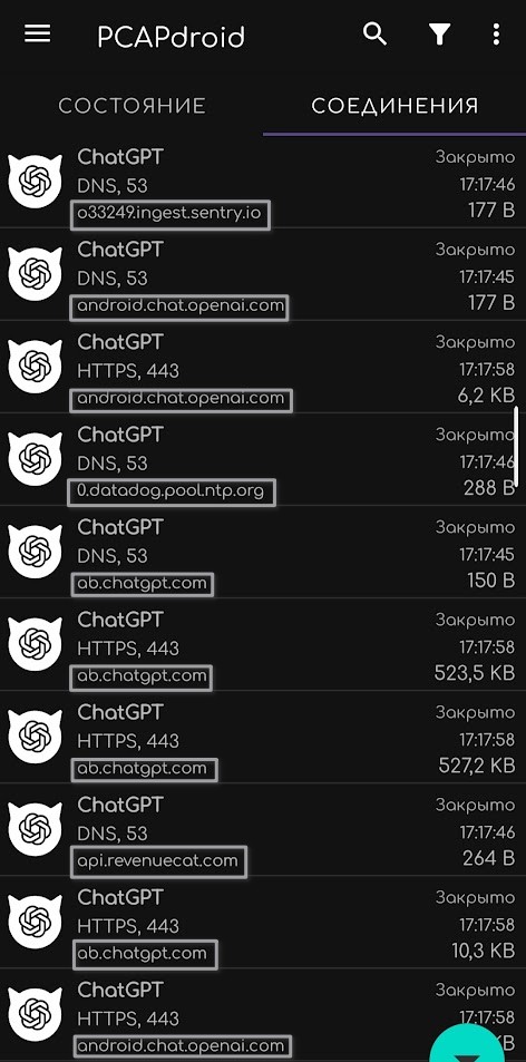 На Android есть аналогичное приложение — PCAPdroid. В приложении есть дополнительный функционал с root-правами: расшифровка содержимого зашифрованного трафика. Но домены можно отследить и без root.