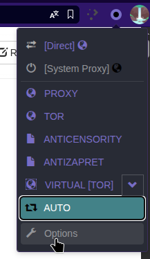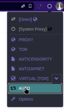 Нажмите по значку Zero Omega в списке расширений и перейдите в режим AUTO.