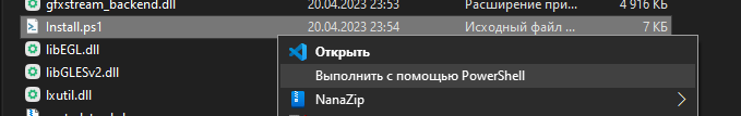 Install.ps1-> Выполнить с помощью PowerShell. Ожидайте завершения установки.