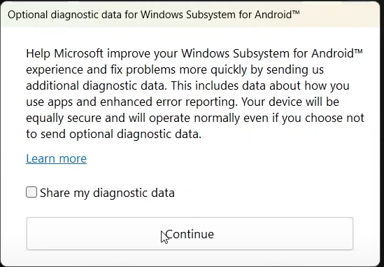 Нажмите Продолжить, ожидайте первого запуска "подсистемы".